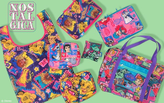 クラシックなディズニーキャラクターたちを、カラフルでポップな総柄で表現し、日常使いしやすい毎日持ちたくなるアイテムに仕上げています。