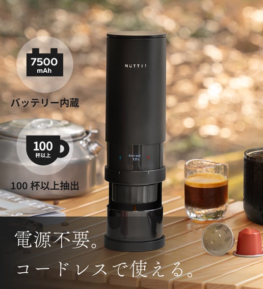 充電式で持ち運び可能のため、いつでもエスプレッソを楽しめます。