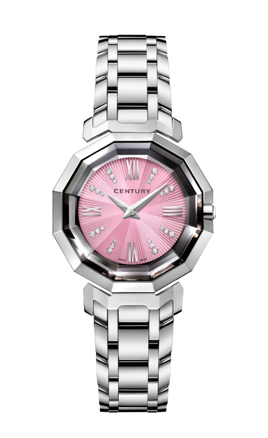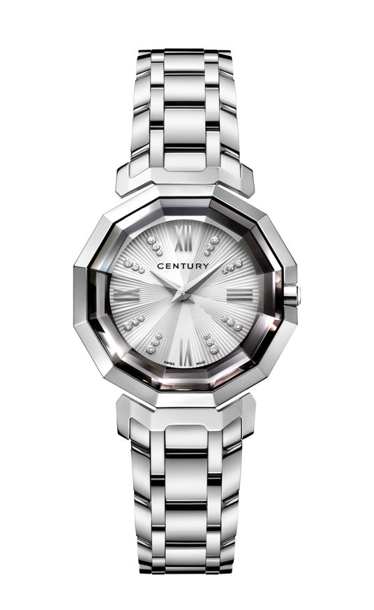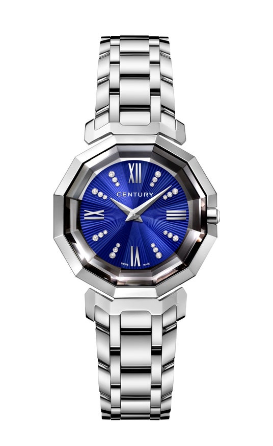 十二角形のケースは完璧なバランスのもとに設計され、現代的な大胆さと上品なクラシックさを見事に両立しています。その中心で輝くのは、熟練した職人が一つひとつ手作業で施したファセットのセンチュリーサファイア。まるで宝石のように、永遠に変わらない輝きを放ちます。