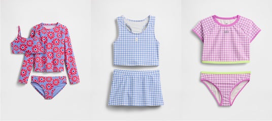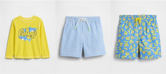 UVカット機能やセパレート、ラッシュガードなど、Gapらしい遊び心あるデザインがバリエーション豊かにラインナップ