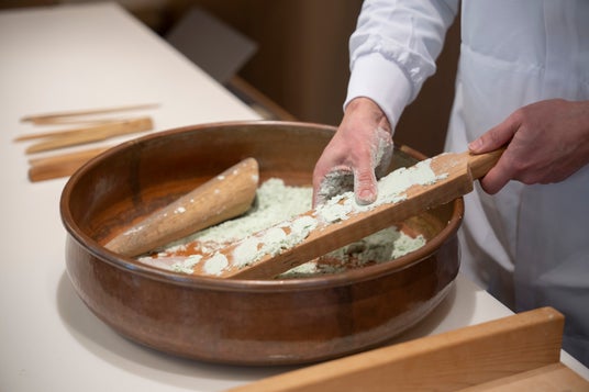生菓子の制作後は、職人による和三盆の制作実演を間近で見学できます。出来立ての和三盆を実食いただき、その繊細な口どけを体験いただきます。