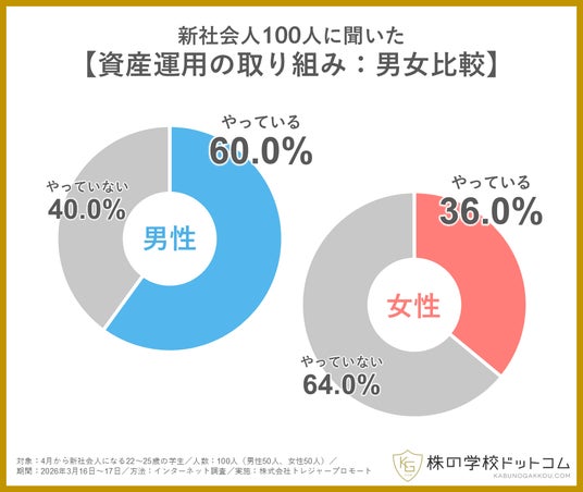 オンライン株式スクール「株の学校ドットコム」(運営会社:株式会社トレジャープロモート、東京都千代田区、代表取締役社長:瀬川 丈)は、この4月に新社会人となる学生100人を対象に、資産運用に関する実態調査を行いました。