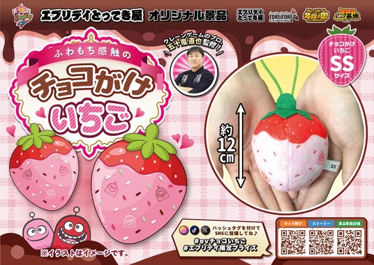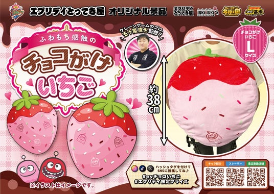 「笑顔創造」が企業理念の株式会社東洋(代表取締役:中村秀夫/本社:埼玉県桶川市以下、当社)は、当社が展開するクレーンゲーム景品シリーズ「エブリデイ オリジナル景品」として、新たにクレーンゲームのプロ監修のふかふかで大きな「チョコがけいちごぬいぐるみ」が登場します。