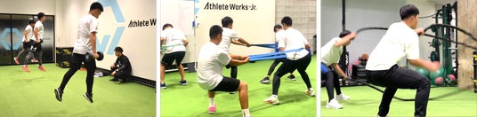 アスリートワークスは、「今のジブンを越えていく」を掲げ、成長過程にあるジュニアアスリートとその保護者に向けて、困難に耐えられる強いココロとカラダを育てる育成型トレーニングを提供しています。すべての競技に共通する“土台づくり”を軸に、野球・サッカーなど競技別の専門コースも展開。これまでにプロ野球選手をはじめ、全日本大学野球選手権大会や全国高等学校野球選手権大会(夏の甲子園)に出場する卒業生も輩出しています。