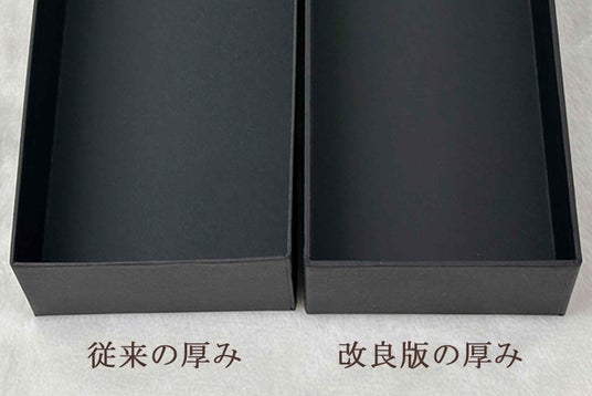 パッケージには、従来仕様の約2倍の厚みを持たせた特製BOXを採用。