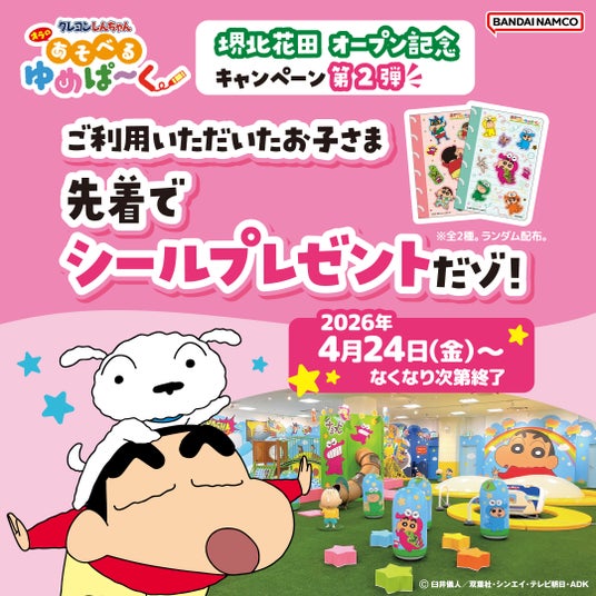 株式会社バンダイナムコエクスペリエンスと株式会社バンダイナムコアミューズメントは、人気アニメ『クレヨンしんちゃん』をテーマにした室内型のあそび場「クレヨンしんちゃん オラの あそべるゆめぱ~く」(以降ゆめぱ~く)を、イオンモール堺北花田(大阪府)に2026年4月24日(金)にオープンします。