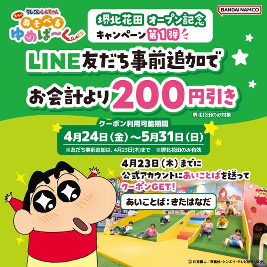 公式サイト URL: https://bandainamco-am.co.jp/kids/shinchan-yumepark/sakai.html