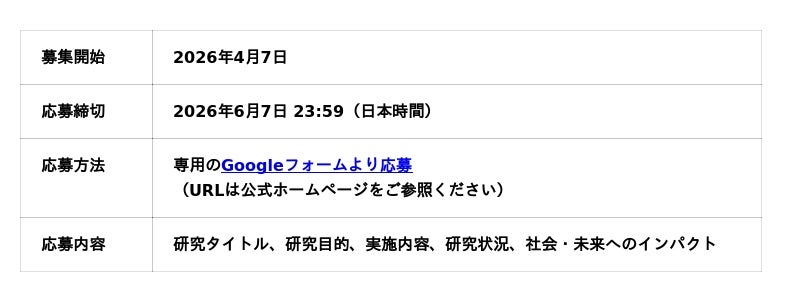 - 人文系分野の研究に取り組む25歳以下(2026年6月7日時点)の大学院生、学部生等