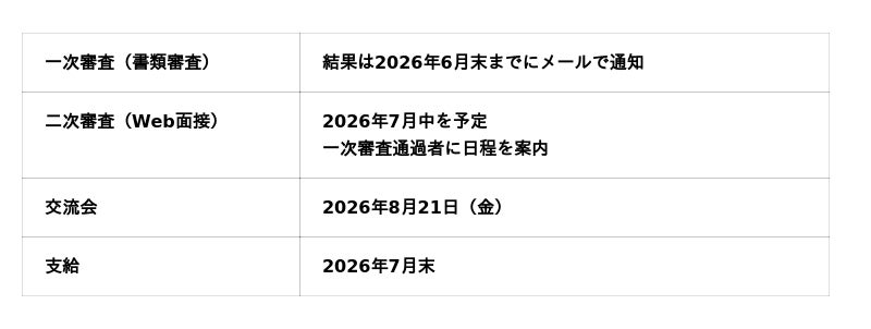 - 2026年8月21日(金)に開催予定の交流会に参加可能であること