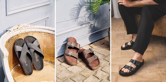 LWG(※)ゴールド認定の高品質なオイルドレザーのクロスストラップが落ち着いた雰囲気の新モデル。スライドタイプで脱ぎ履きのしやすさもポイント。人体構造に基づいて設計された天然コルクのミッドソールとフォームのフットベッドが足への圧力を分散して安定性を高め、疲労を和らげて快適な歩行をサポートします。軽量EVA素材のラギッドソール。