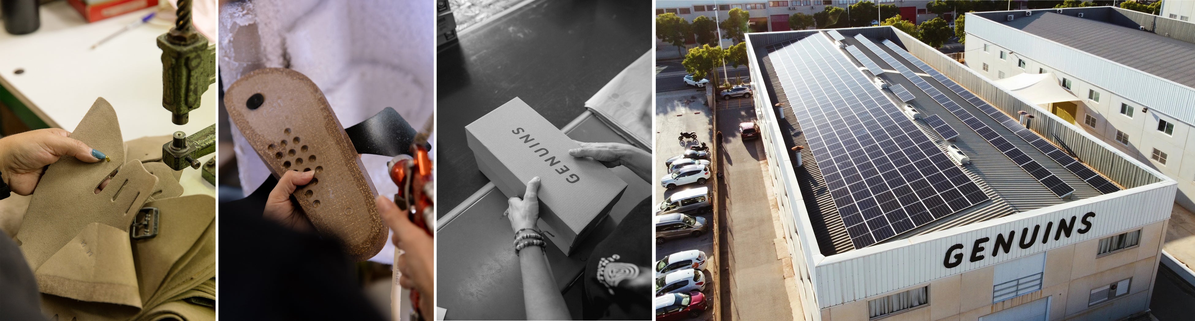 GENUINSでは、自然環境を配慮した素材を積極的に取り入れて、スペイン・エルチェの自社工場で生産しています。また、安全で健康的な労働環境づくり、再生エネルギーを活用した省電力での商品生産、アマゾン熱帯雨林の保全活動など、製品を取り巻く様々な環境に配慮した取り組みを実践しています。