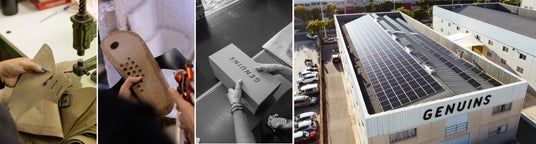自社の生産工場にソーラーパネルを設置したことにより、「GENUINS」の製造に使用されるエネルギーの68%が再生可能となりました。駐車場には電気自動車用のソーラーパネルと充電ポイントが設置されています。