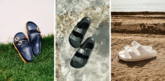 合成皮革アッパーで、動物由来の素材不使用の定番モデルに新色が登場。2本のストラップでフィット感を調節可能。人体構造に基づいて設計された天然コルクのミッドソールとフォームのフットベッドが足への圧力を分散して安定性を高め、疲労を和らげて快適な歩行をサポートします。