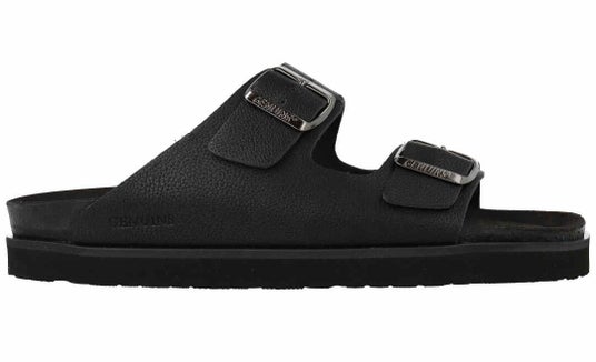 アッパーはヴィーガン素材の合成皮革、2箇所のバックルでフィット感を調節可能。人体構造に基づいて設計された天然コルクのミッドソールとフォームのフットベッドが足への圧力を分散して安定性を高め、疲労を和らげて快適な歩行をサポートします。凹凸感のある軽量EVA素材のラギッドソールがポイント。