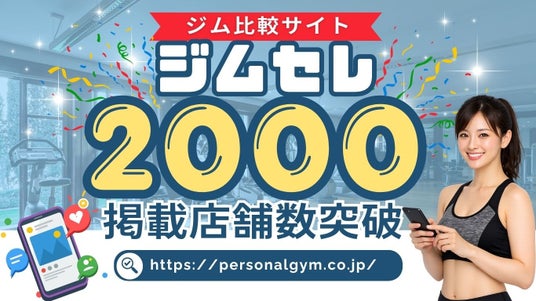 株式会社パーソナルジムマーケティング(本社:大阪府大阪市北区、代表取締役:塩路高浩)が運営するパーソナルジム専門ポータルサイト「ジムセレ」(https://personalgym.co.jp/ )の掲載店舗数が、2,000ページを突破いたしましたのでお知らせいたします。