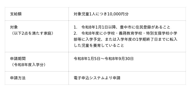 豊中市HP ~豊中市に居住する児童を対象とした小学校等入学時はぐくみポイント支給事業~