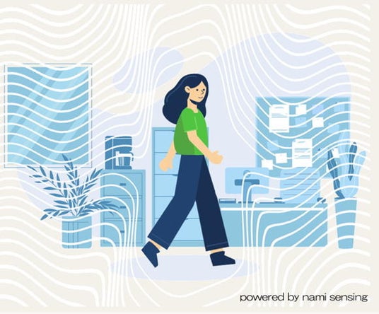 Wi-Fiセンシング技術は、送信機から受信機へ送られる信号や波が人によってどの程度歪めているかを計測する技術です。誰かがこのエリアを歩くと、プラグがその乱れをモニターし、生活の動きが検知されたことをスマートフォンで確認できます。モーションを検知しました。あらかじめ登録したメールアドレスへ通知が届きます。「安心」というコンセプトで大切な人の動きをすぐに知ることができます。