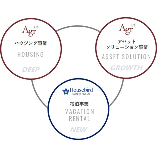 「ハウジング事業」「アセットソリューション事業」「宿泊事業」の3つを柱として、お客様に心からの満足をご提供するため、手がけるすべての事業で一貫した流れにこだわって事業展開をしております。