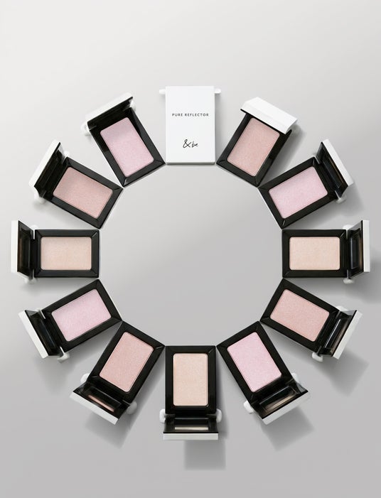 <&be(アンドビー)>が提案する、ナチュラルなツヤ肌づくりの定番アイテムであるハイライター。今回新たに登場する「&be ピュアリフレクター」は、パウダーハイライターでありながら粉っぽさや乾燥を感じさせず、しっとり肌になじむテクスチャーが特長で、光のヴェールをまとったような透明感※のあるツヤ肌に仕上げてくれるアイテムです。カラーは、河北がこだわり抜いた3色展開。「01」はパーソナルカラー問わずお使いいただける、肌なじみのよいアイボリーベージュ。「02」は血色感と温かみのあるツヤを与えるピンクベージュで、チークとしてもお使いいただけるマルチユースカラーです。限定カラー「03」はくすみをやわらげるラベンダーで、肌の透明感※をぐっと引き出します。いずれのカラーも細かく上品なパールを配合。クリームチークの上から重ねることで、頬に立体感と透明感※のあるツヤをプラスしてくれます。さらに、蓋が180度に開閉するスタイリッシュなパッケージは、コンパクトサイズ&ミラー付きで、持ち運びにもぴったりです。