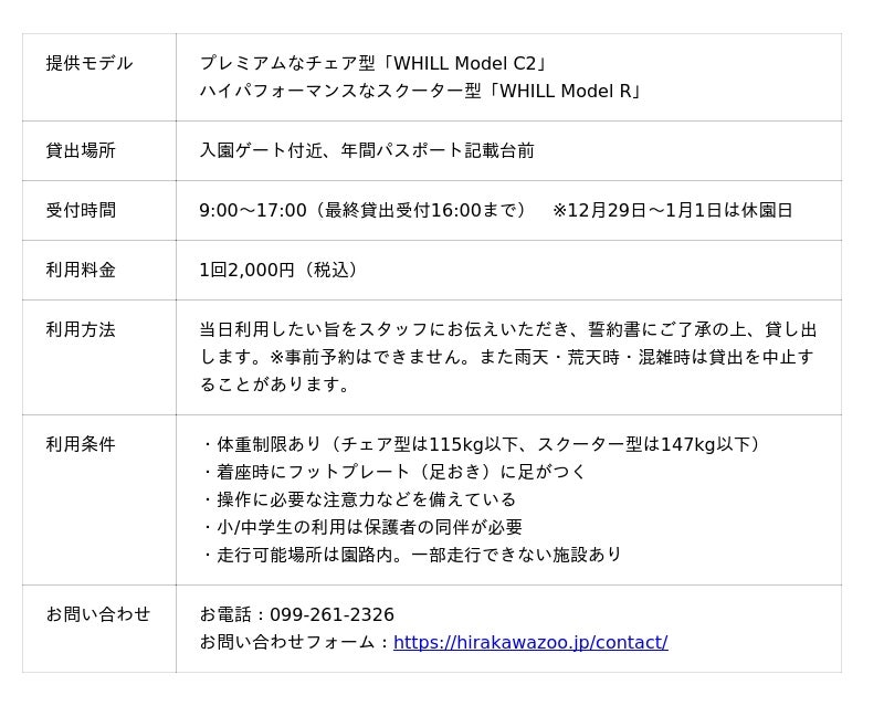 ◼️平川動物公園 WHILLモビリティサービス 概要