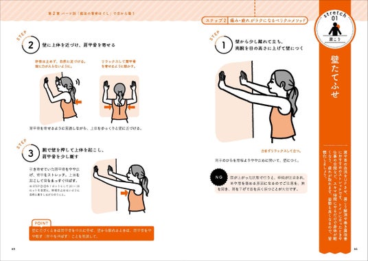 紹介しているメソッドは、「ゆるめる・めぐらせる・整える」の3ステップの「背骨ほぐし」で構成されています。特別な道具や広いスペースを必要とせず、汗をかかないほど簡単な25種類のストレッチとマッサージを、わかりやすいイラストとともに丁寧に解説しています。