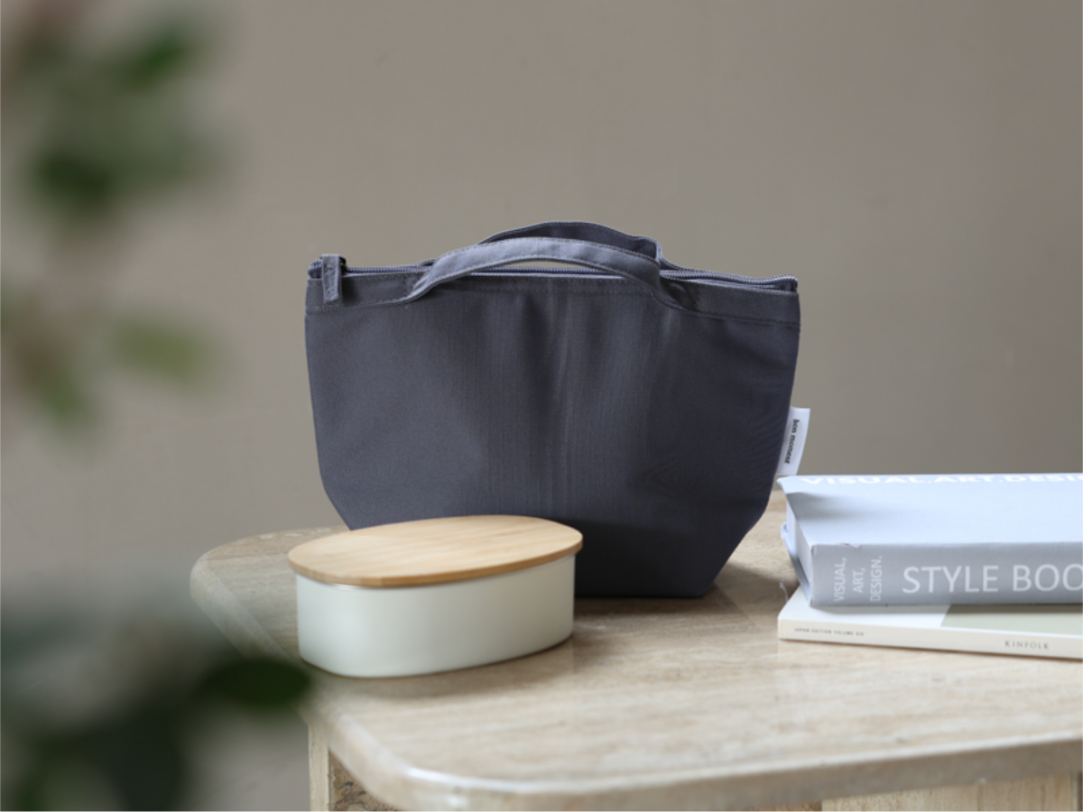 どちらもシンプルなデザインで、子どもの通学用から大人のオフィス用まで幅広く使えます。ランチバッグは全体をマットで上品な無地生地に。またハンドルは邪魔になりにくいコンパクトな設計で、バッグの中にもすっきりと入れることができます。