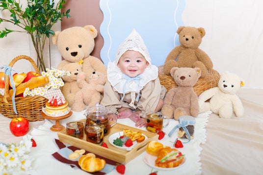 撮影小物には、世界的に知られるドイツのSteiff社製テディベアを採用し、「くまさんとピクニック撮影会」として生まれ変わりました。