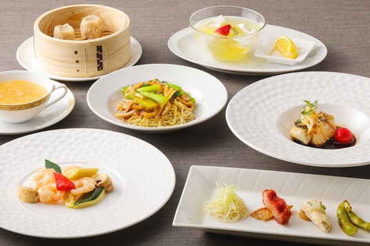 中国料理「大観苑」の目玉は、房総金目鯛を異なる味わいで愉しむ「房総金目鯛二種の味わい ホワイトチリソースとパッションフルーツマヨネーズ」。上総牛の柔らか煮など、厳選食材を意外な組み合わせで楽しむ、ここでしか出会えない“ちば中華”が並びます。