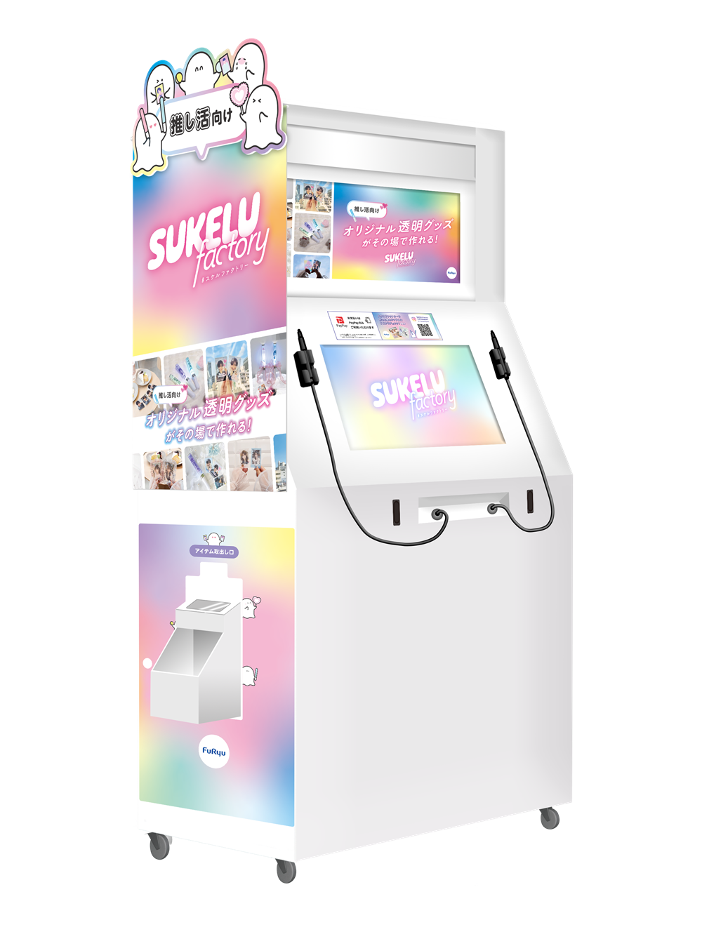 『SUKELU factory』は、プリ機開発で培った技術力やフリューの強みである“かわいい”の企画力を活かした新サービスです。プリ機で制作実績がある透明シールに文字や写真を自由に*2印刷できる機能を搭載。自分ならではのこだわりを詰め込んでスタンプや背景をデコレーションし、トレカやペンラシートなどの推し活グッズを可愛く・手軽に制作することができます。■コンパクトなサイズとスピード感のある開発で、“推し活導線”にある店舗でもユーザー体験を拡げる