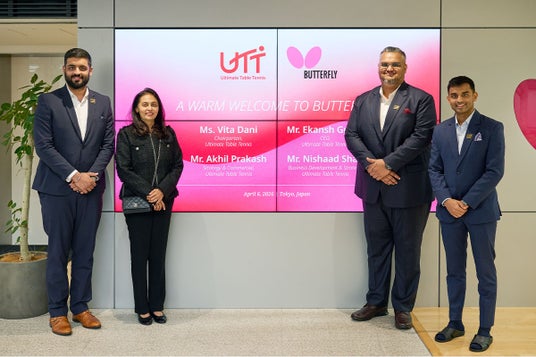 「バタフライ」ブランドを展開する株式会社タマスは、インド最高峰のプロ卓球リーグであるUltimate Table Tennis(UTT)と5年間のタイトルスポンサー契約を締結しました。本パートナーシップにより、リーグは2026年にゴアで開催されるシーズン7より、正式に「Butterfly Ultimate Table Tennis」として展開されます。