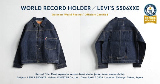 国内外で50店舗以上のサロンを展開する株式会社ファイブスター(本社:福島県郡山市、代表取締役:佐久間正之)は、当社が55,000,000円(税込)で取得した歴史的ヴィンテージデニムジャケット「LEVI’S S506XXE(大戦モデル・スプリットバック仕様)」が、2026年4月7日、Guinness World Records より公式認定を受けたことをお知らせします。