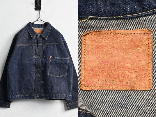 背面が2枚の生地で縫い合わされた通称「スプリットバック」と呼ばれる仕様を備え、製造から約80年が経過しているにもかかわらず、ほぼデッドストック級の保存状態を保ち、ロットナンバーが判読可能なレザーパッチも残存しています。さらに、ヴィンテージデニム分野の専門アーカイブ本として知られる『Levi’s(R) VINTAGE DENIM JACKETS TYPEI/TYPEII/TYPEIII』(藤原裕氏・川又直樹氏 監修/ワールドフォトプレス刊)において、「No.17」として掲載されている個体でもあります。