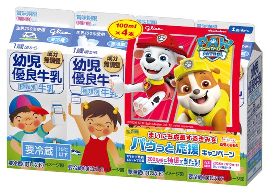 江崎グリコ株式会社は、「幼児のみもの」が「パウ・パトロール」と初めてコラボレーションした、「まいにち成長するきみを パウっと応援キャンペーン」を2026年4月13日(月)より開始します。