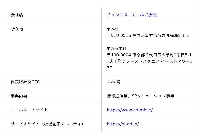 セールスプロモーション支援サービスを展開するチャンスメーカー株式会社