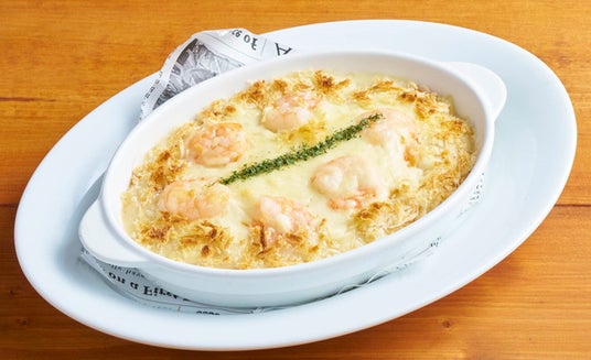 とろ~りチーズソースとぷりぷり海老のドリアチーズのコクと海老のぷりぷり食感が子供から大人まで虜になる味わいです。