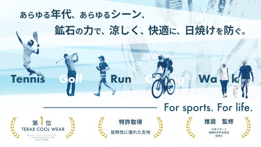 屋外スポーツ、ランニング、テニス、ウォーキング、ヨガなど、多くの“動くシーン”で求められるのは「動きやすい」「涼しい」「紫外線から守れる」 という3要素。