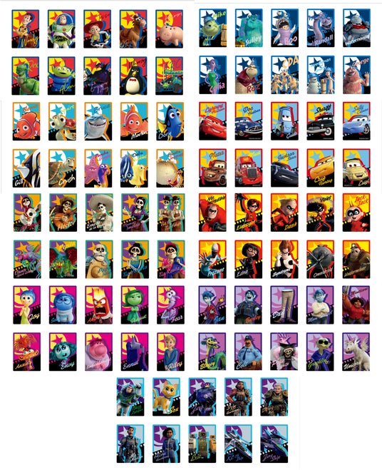 1セット10枚入り!専用の台紙付きで、ピクサーのキャラクターたちをコレクションして楽しめる!