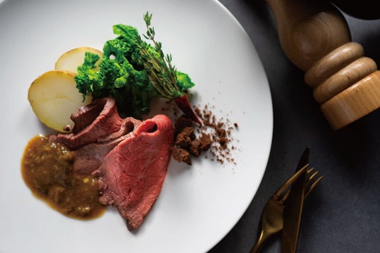 メインディッシュには、フレンチの感性を活かして仕上げる、ひねりの効いた肉・魚料理が登場。