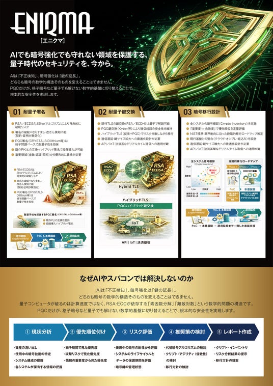 量子総合研究所は2026年4月7日、金融庁方針に準拠したPQC移行支援サービスと実証基盤「ENIQMA」を発表。量子時代の暗号リスクに対応し、金融機関の段階的移行を支援する。