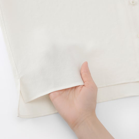 ゆったりとしたシルエットで、身体の線を拾いにくく、夏場でも蒸れにくく涼やかにさらっと着用いただけます。カジュ アルからきれいめまで、さまざまなシーンで着用いただけます。