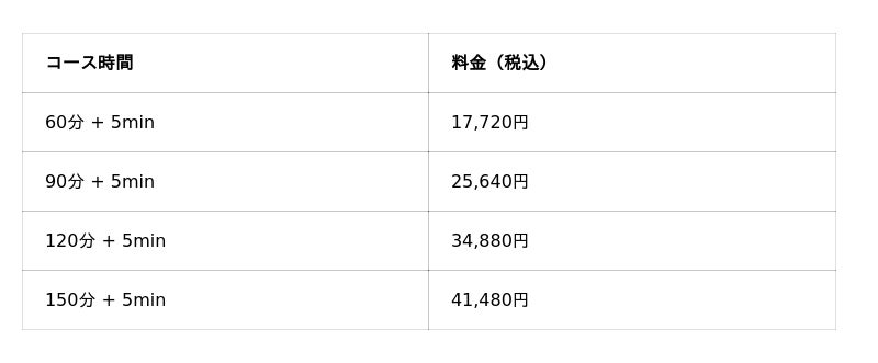 【最強コラボコース 料金表】