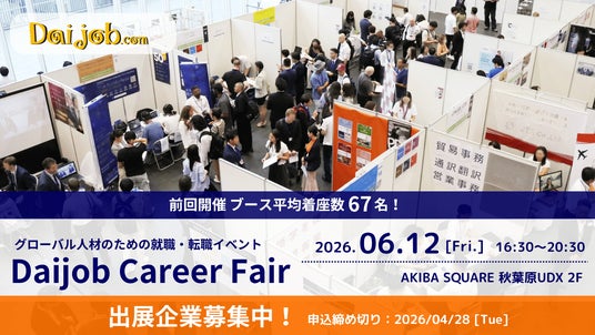 ビジネス・プロフェッショナル×バイリンガルのための転職・求人情報サイト「Daijob.com」を展開するヒューマングローバルタレント株式会社(本社:東京都新宿区、代表取締役:横川 友樹、以下「当社」)は、グローバル人材特化の対面型転職イベント「第60回Daijob Career Fair」を、2026年6月12日(金)にAKIBA SQUARE(東京都:秋葉原)で開催するにあたり、本日より出展企業の募集を開始します。