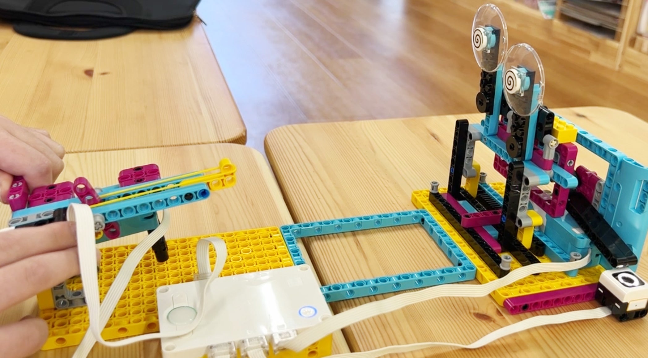 画面の中で組み立てたプログラムによって、目の前のロボットが動き出す!「自分でできた!」という成功体験を届けました。