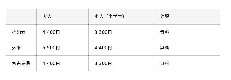 アクセス :宮古空港から車で約20分/みやこ下地島空港から車で約40分