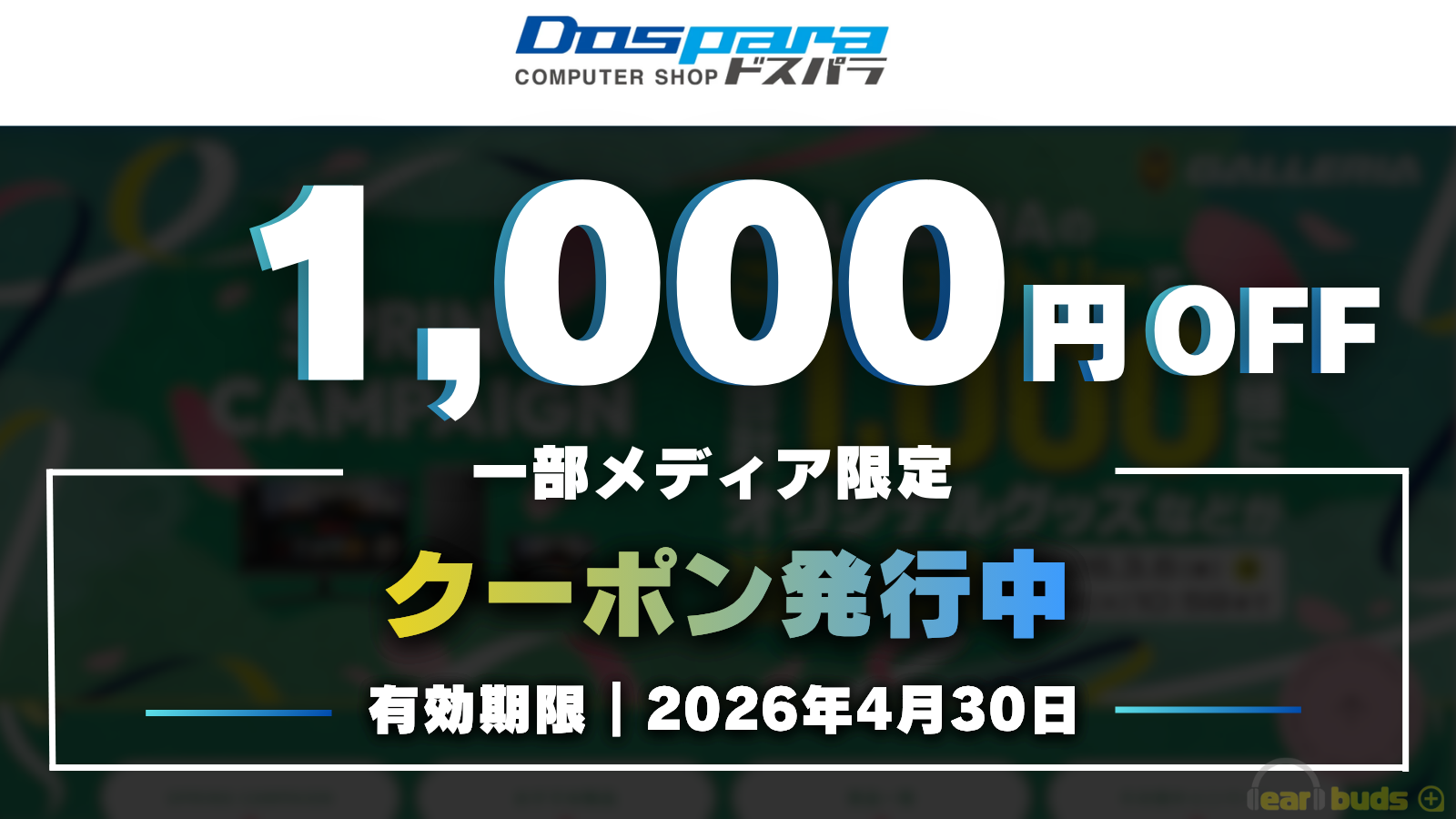 注意事項:本クーポンはイヤバズ独自の提携によるもので、ドスパラ公式キャンペーンとは異なります。