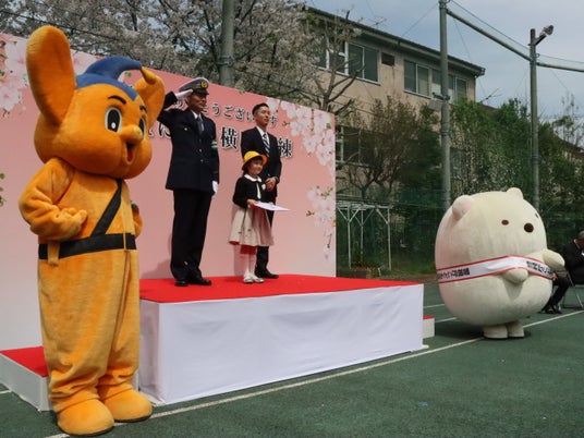 式典では、警視庁のシンボルマスコット「ピーポくん」とともに、2026年4月より「警視庁こども交通安全大使」に就任した「すみっコぐらし」から「しろくま」が登場。「しろくま」たちの登場に子供たちの表情は笑顔で溢れました。