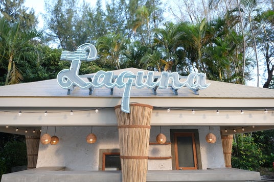 開放感あふれるプールサイドに誕生した、新たな楽しみの拠点「アウトサイドバー」「LAGUNA」の文字の大きなネオンライトは、夜になると一層存在感を放ち、思わず写真を撮りたくなるフォトスポットに。昼はリゾートらしい開放感、夜は雰囲気のあるナイトシーンと、時間帯によって異なる魅力をお楽しみいただけます。