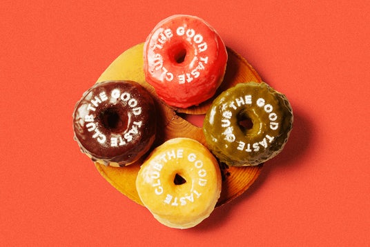 ドーナツ from GOOD TOWN DOUGHNUTS 本イベントオリジナルメニュー本イベントオリジナルメニュー「THE GOOD TASTE CLUB」ロゴ入りドーナツ。クラシックグレイズド、チョコレートクランチ、京都宇治抹茶、
