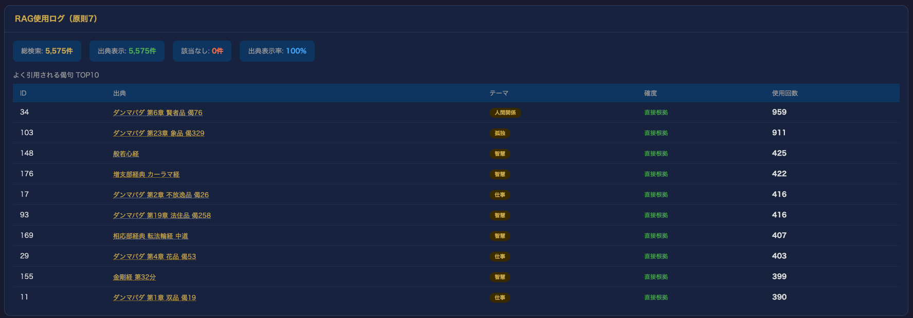 ◼️ 経典引用の仕組み ── 出典表示率100%の「嘘をつかないAI」