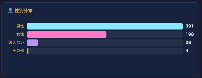時間帯やテーマに加え、サービスの統計メタデータからは利用実態のさまざまな側面が見えてきます。以下はすべて、個人を特定しない集計値です。